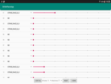 Bahnübergreifendes, interaktives Wettrennen: Welche Bahn erzielt zuerst am meisten Strikes oder macht die meisten Nuller ?! Sobald ein Strike, und/oder ein 9er* oder aber ein Nuller auf einer Bahn geworfen erzielt wurde, wird der aktuelle Spielstatus in Echtzeit auf jeder Bahn (welche am Rennen teilnimmt) angezeigt. Zusätzlich wird der Spielername und die Bahnnummer vom letzen Spielzug angezeigt ! Die Steuerung des StrikeRace-Spieles erfolgt auf einem Tablet, der Moderator kann Bahnen hinzufügen und entfernen und dies auch mitten im laufenden Spiel. Jeder Bahn kann spezifisch zugeordnet werden, ob nur bei einem Strike oder aber auch schon bei einem 9er* gepunktet werden soll ODER aber ob nur bei Nullen ein "Strafpunkt" erzielt wird. Die Anzahl Punkte, die notwendig sind um das Ziel zu erreichen kann vom Tablet aus eingestellt und dynamisch geändert werden. Zudem kann der Moderator jederzeit manuell den Spielstand für jede Bahn anpassen.